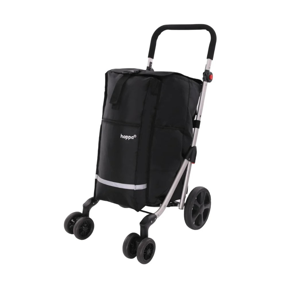 Nákupní taška na kolečkách z kolekce HOPPA. POHODLNÝ - nákupní vozík Hoppa je ideální pro malé i velké a nabízí bezpečnější a pohodlnější způsob nakupování a cestování. Odstraňuje fyzickou námahu při přenášení nákupu, je vybaven snadno uchopitelnou rukojetí a 6 koly pro plynulé tažení, díky čemuž je ideální pro vaše další dobrodružství. VELKÁ KAPACITA - objem 74 litrů zaručuje, že se při větších nákupech nebudete muset tahat s taškou navíc. Je také vybaven malou kapsou na zip v zadní části nákupního vozíku pro rychlý a snadný přístup k vašim osobním věcem, jako je kabelka, peněženka nebo telefon. SNADNÉ SKLÁDÁNÍ - jednoduše odcvakněte kolečka z nákupního vozíku a složte konstrukci pro rychlé a snadné skladování (upozorňujeme, že barva koleček se může lišit). Tašku lze také snadno vyjmout pro účely čištění. Nákupní vozík Hoppa je z voděodolného materiálu z polyesterového mikrovlákna, který zajišťuje odolnost např. během deště. Hlavní kapsa je vybavena praktickým zavíráním na šňůrku a navíc krytá klopou, která poskytuje dodatečnou ochranu vašeho nákupu. Vyobrazené doplňky jako láhev a potraviny na fotografiích jsou pouze ilustrativní a nejsou součástí produktu. • materiál: polyester • rozměr tašky: 60(95) x 40 x 31(60) cm ( ) = rozměr konstrukce včetně koleček • objem: 74 l • hmotnost: 3,7 kg • doporučená nosnost až 25 kg • odnímatelná kolečka • voděodolný materiál • skládací