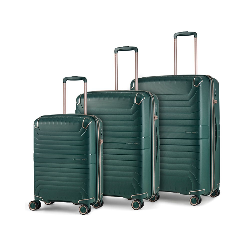 A ROCK Astrid kollekció utazótáskái erős és ütésálló polipropilénből készülnek. A táskák cipzárasak, és a cipzárcsúszók TSA süllyesztett kódzárral kapcsolhatók. A tokok belső térfogata egy második cipzárral növelhető. A felső és oldalsó fogantyúk műanyagból készültek. A legkisebb bőröndnek (S) nincs oldalsó fogantyúja. Könnyű kihúzható rendszerrel, a fedélen egy szövet elválasztóval elválasztott rekesszel, belső zsebekkel és rögzítő hevederekkel rendelkeznek. A teljes guruló rendszer a bőrönd belsejében, szövetbélés alatt helyezkedik el, hogy megakadályozza a rendszer sérülését szállítás közben, és négy dupla, 360°-ban forgatható görgővel van felszerelve. az ár a 3db L / M / S méretű, ábrázolt 3db készletre vonatkozik. - Méret L (nagy) / M (közepes) / S (kicsi)- anyaga: polipropilén- belső mérete: 69 x 48,5 x 30 cm / 58 x 42,5 x 26,5 cm / 48 x 34,5 x 21,5 cm- külső mérete: 76 x 51,5 x 31 cm / 65 x 45,5 x 27,5 cm / 55 x 37,5 x 22,5 cm = a bőrönd méretei a kerekekkel és a felső fogantyúval együtt- térfogat: 100 l / 65 l / 36 l + expander- rozšiřitelný - objem lze zvětšit cca o 10 až 15%- hmotnost: 4,7 kg / 3,8 kg / 3 kg- doporučená nosnost 25 kg / 20 kg / 10 kg- (u vel. S teleszkópos) hosszabbító rendszer- 4 dupla kerék a nagy használati kényelemért, 360°-ban forgatható- 15 év garancia- gyártói garancia a gyártási hibák ellen, amelyek a hibás kivitelezésből vagy anyaghibákból adódnak- TSA kódzár TSA zár (Transportation Security Administration)- elengedhetetlen az USA-ba, Ausztráliába, Japánba tartó járatokhoz, ahol a repülőtéri biztonságiak jogosultak a poggyász tartalmát akár erőszakkal is ellenőrizni, ha az le van zárva.- A TSA zár ezért lehetővé teszi, hogy a poggyászát feloldja és újra lezárja anélkül, hogy az ellenőrzés során sérülést kockáztatna, mivel a TSA tisztviselő egy univerzális "MASTER" kulccsal van felszerelve.