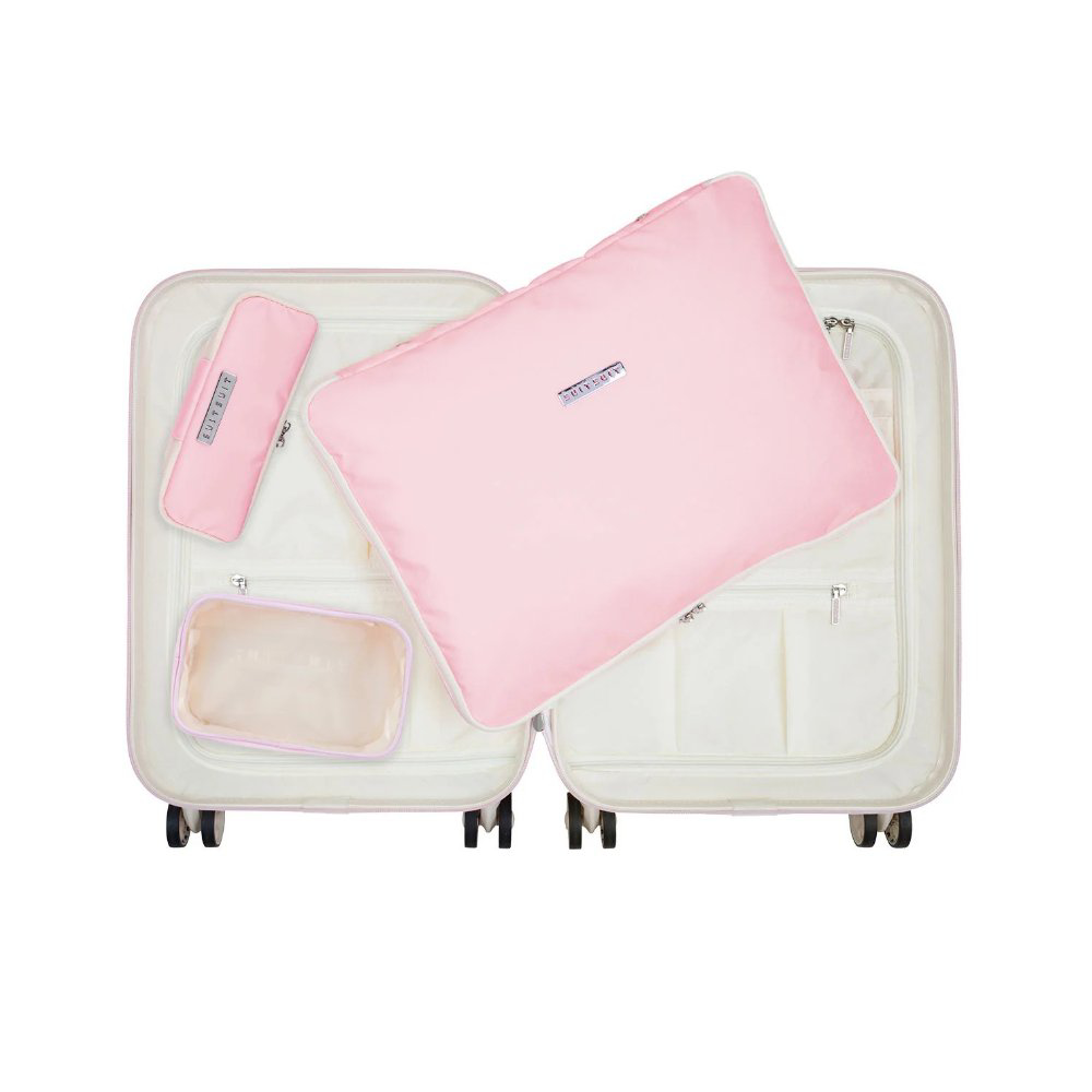 A SUITSUIT® Perfect Packing rendszer a Fabulous Fifties kollekcióból. A tökéletes utazási készletet a kabinméretű (S) poggyászainkhoz alkottuk meg, hogy bőröndje ne csak kívülről, hanem belülről is szép és tiszta legyen. A készlet olyan tökéletesen illeszkedik egymáshoz, hogy lehetővé teszi a bőrönd belsejében a hely optimális kihasználását. A Packing Cube kézipoggyász-készlet tartalmaz egy speciálisan kialakított ruhaszervezőt, egy átlátszó piperetáskát; ideális 100 ml folyadékok csomagolására, valamint egy kis kiegészítő táskát. Ezt a ruhaszervezőt (45 x 33 x 4 cm) kifejezetten a kézipoggyászunkhoz alkottuk meg. Úgy terveztük, hogy amikor a bőrönd mindkét oldalát felcipzározza, tökéletesen beférjen közéjük. A két zárt rekesz védelmet nyújt a legérzékenyebb ruhadaraboknak, és minimálisra csökkenti a gyűrődés kockázatát. Ez a szervező lehetővé teszi, hogy optimálisan kihasználja a bőröndben lévő helyet, és megkíméli Önt a gyűrött ruhák okozta gondoktól. Az átlátszó piperetáska (22 x 7 x 13 cm) tökéletes megoldás az összes szépségápolási termék szállítására, ha csak kézipoggyásszal utazik. Az átlátszó előlapnak köszönhetően egy pillantással láthatja, hogy mi van a piperetáskában. A piperetáskában a 100 ml-es flakonokban lévő folyadékokat rendezetten tarthatja, például a vámvizsgálat során. A piperetáska cipzárral záródik, és erős poliészterből és környezetbarát PVC-ből készült! A tartozéktáskával (20 x 8 x 10 cm) egy helyen tarthatja az összes kábelt, töltőt és power bankot. A belsejében található extra hálós táska lehetővé teszi, hogy minden apró tartozékot, például füldugót tároljon. Ezzel véget vethet a frusztráló tapogatózásnak - pontosan ez az, amit nyaraláskor nélkülözhetünk, nem igaz? Ez az ideális kis táska olyan kompakt, hogy bármilyen bőröndben elfér, és ugyanilyen könnyen elfér a kézitáskájában is!