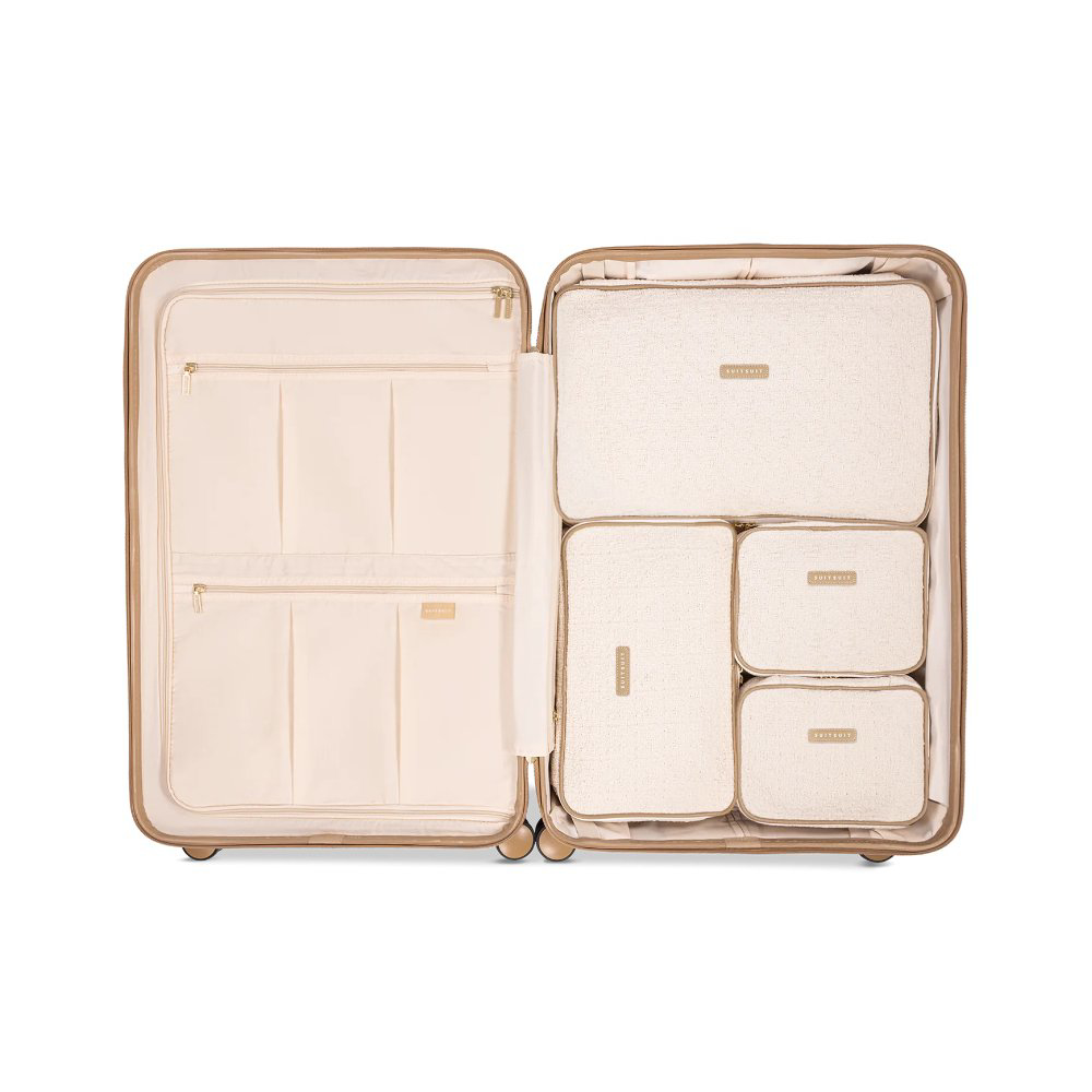 A SUITSUIT® Perfect Packing rendszer a Fusion Sloppy Cotton kollekcióból. A SUITSUIT® Perfect Packing szettet kifejezetten a SUITSUIT® nagyméretű (L) bőröndökhöz tervezték, hogy bőröndje ne csak kívülről, hanem belülről is szép és tiszta legyen! A készlet olyan tökéletesen illeszkedik egymáshoz, hogy optimálisan kihasználja a bőrönd belsejében lévő helyet. A készlet 4 különböző típusú szervezőből áll: Az S méretű kis utazási ruhazsák biztosítja, hogy az összes zokni és egyéb apróság együtt legyen. Így a nyaralásból végül egy válogatott, furcsa zoknikkal térhetsz haza: Az utazási alsónemű-takaró lehetővé teszi, hogy rendszerezd az alsóneműidet, így soha többé nem kell a bőröndödben turkálnod a kis és kényes ruhadarabok után kutatva. Az alsóneműhuzat két hálós zsebből áll, amelyek mindegyikéhez tartozik még egy külön kis cipzáras rekesz. Tökéletes megoldás az apró, de drága tárgyak, például fülbevalók és egyéb ékszerek tárolására is. A közepes méretű M utazási ruhatakaró tökéletes forma az összes nadrág és rövidnadrág becsomagolásához. Ha ezt a szervezőt felsők és ingek számára szeretné használni, akkor meg fogja találni, hogy ezekre is tökéletes. az XL méretű extra nagyméretű utazási ruhatakaró az összes ing, nadrág, pulóver és ruha számára alkalmas. A rendesen összehajtogatott ruhákból a speciális szellőzőnyílásokon keresztül kipréselheti a felesleges levegőt, így maximalizálhatja a helykihasználást.