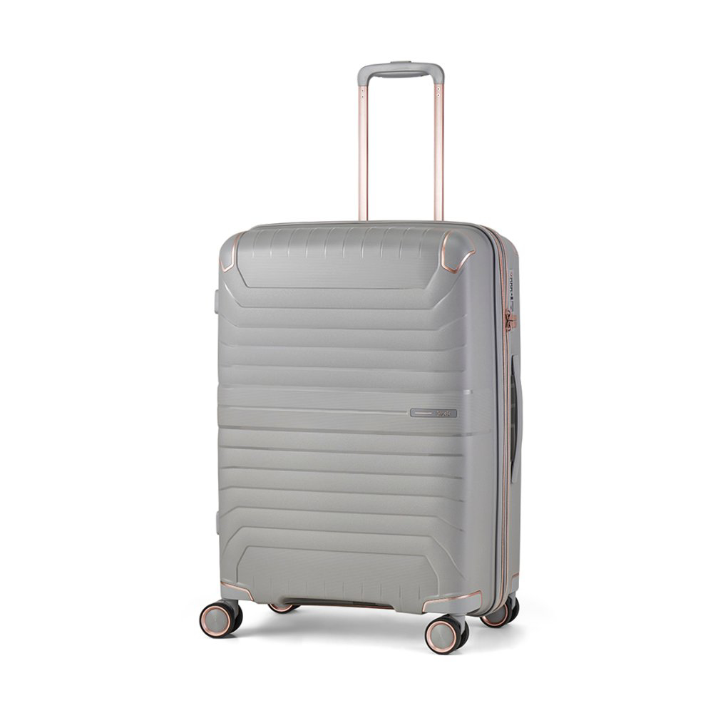 A ROCK Astrid kollekciós utazótáska polipropilénből készült, amely erős és ütésálló. A táska cipzáras, mindkét cipzárcsúszka TSA süllyesztett kódzárral kapcsolható be. Egy második cipzárral növelhető a bőrönd belső térfogata. A felső és az oldalsó fogantyúk műanyagból készültek. Könnyű kihúzható rendszerrel, a fedélen egy szövet elválasztóval elválasztott rekesszel, belső zsebekkel és rögzítő hevederekkel rendelkezik. A teljes guruló rendszer a bőrönd belsejében, szövetbélés alatt található, hogy megakadályozza a rendszer sérülését szállítás közben, és négy dupla, 360°-ban forgatható görgővel van felszerelve. Az ár 1db-ra vonatkozik az ábrázolt M méretből. - M méret (közepes) - anyaga: polipropilén - belső méretei: 58 x 42,5 x 26,5 cm - külső méretei: 65 x 45,5 x 27,5 cm = a táska méretei kerekekkel és felső fogantyúval együtt - térfogata: 65 l / 73 l kibontva - bővíthető - a térfogat kb. 10-15%-kal növelhető - súlya: - a táska mérete: 1,5 cm: 3,8 kg - ajánlott terhelhetőség 20 kg - kihúzható rendszer - 4 dupla kerék a nagy használati kényelem érdekében, 360°-ban forgatható - 15 év garancia - gyártói garancia a gyártási hibák miatt keletkezett gyártási hibákra, amelyek a hibás kivitelezésből vagy anyaghibákból adódnak - TSA kódzár TSA zár (Transportation Security Administration) - elengedhetetlen az USA-ba, Ausztráliába, Japánba tartó járatokon, ahol a repülőtéri biztonságiak jogosultak a csomag tartalmát akár erőszakkal is ellenőrizni, ha a csomag zárva van. - A TSA zár ezért lehetővé teszi, hogy a poggyászát feloldja és újra lezárja anélkül, hogy az ellenőrzés során sérülést kockáztatna, mivel a TSA tisztviselő egy univerzális "MASTER" kulccsal van felszerelve.