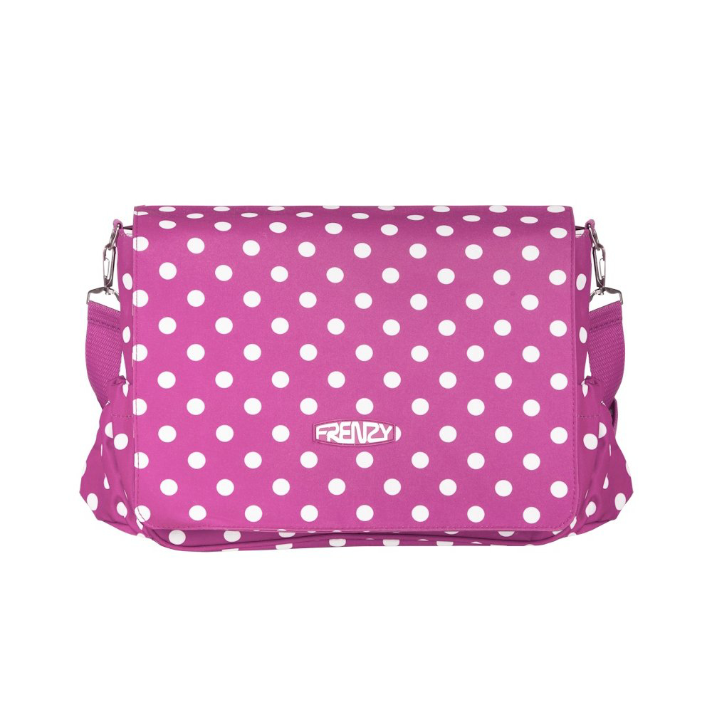 Válltáska a FRENZY Baby Bag kollekcióból. A fő rekesz patenttal fedett és tépőzárral záródik. A főrekesz belsejében az egyik oldalon két kisebb zseb, a másik oldalon pedig egy cipzáras zseb található. Az elülső oldalon lévő patent alatt két kisebb zseb található. A táska hátulján egy tépőzáras zseb található. A táska oldalain pl. palackok szállítására alkalmas zsebek találhatók. A táska levehető, állítható vállpánttal rendelkezik. A táskához tartozik egy 66 x 33,5 cm-es thermo pelenkázó alátét és egy palacktartó hüvely (21 cm magasságú, 9 cm átmérőjű).- Anyaga: poliészter- mérete: 28 x 38 x 14 cm- térfogata: 15 l- súlya: 0,75 kg- ajánlott teherbírás: 5 kg.